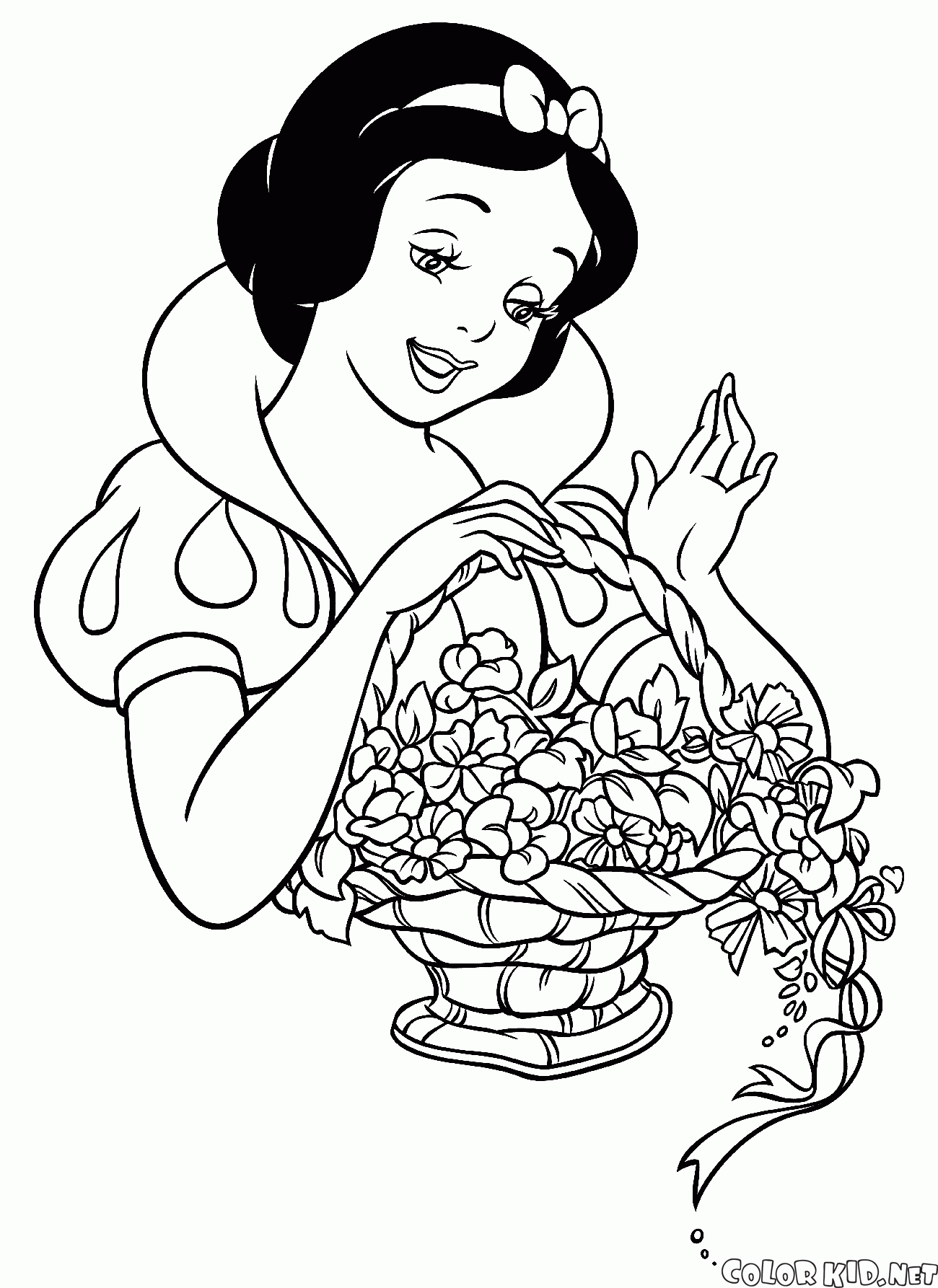 Blancanieves con una cesta de flores