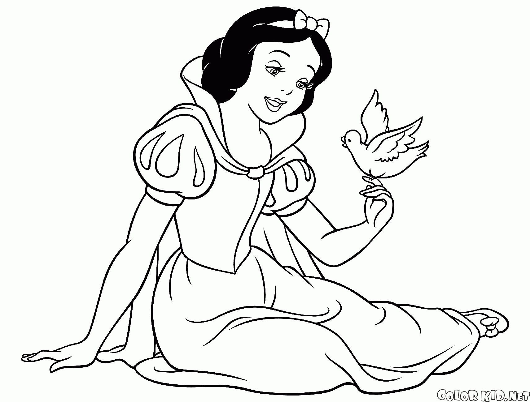 Dibujo para colorear - Blancanieves y un pájaro