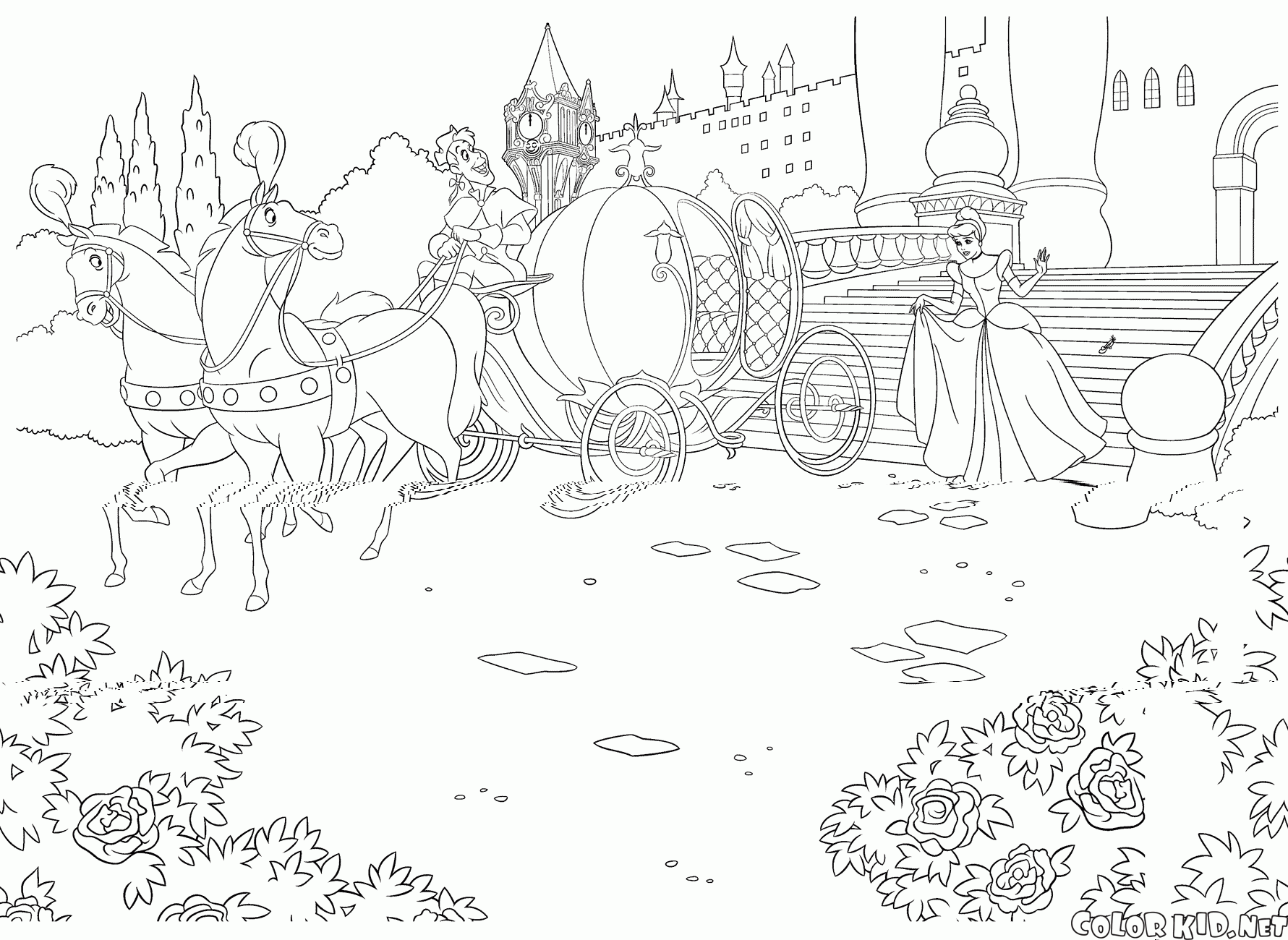 En Dibujos animados hallará las páginas para colorear Cenicienta y otras también.