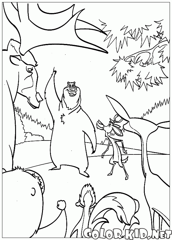 Dibujos para colorear - Colegas en el bosque