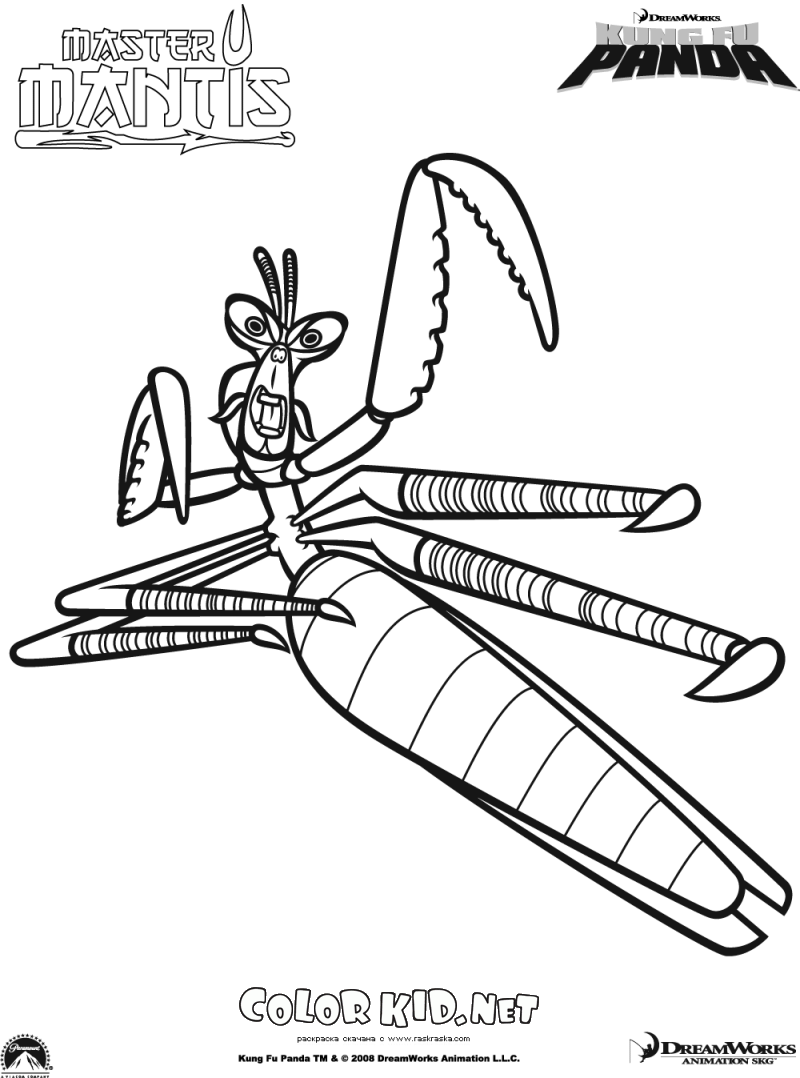 Puede descargar e imprimir las páginas para colorear para niños Maestro Mantis desde nuestra web.