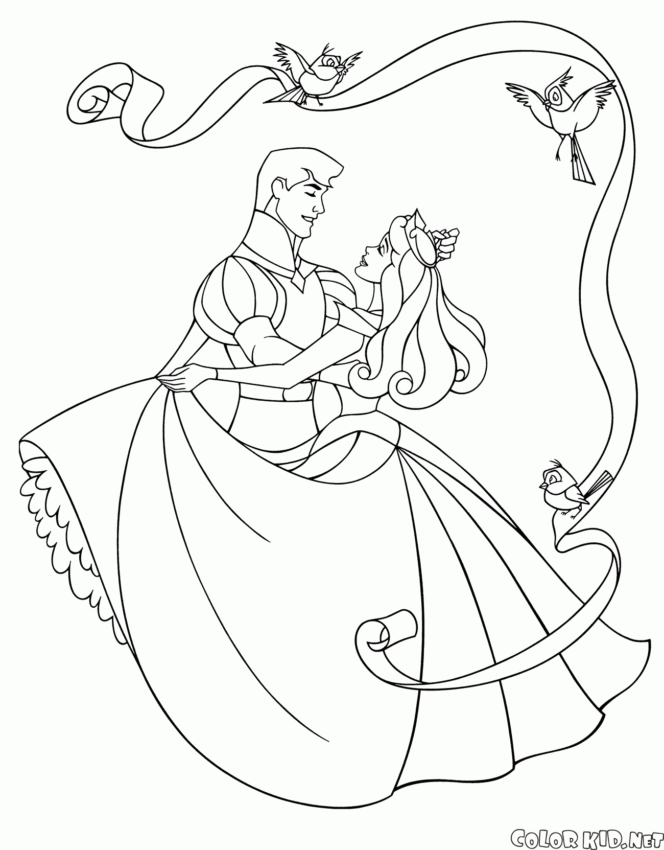 Puede descargar e imprimir las páginas para colorear para niños La boda de Aurora y de Philli desde nuestra web.