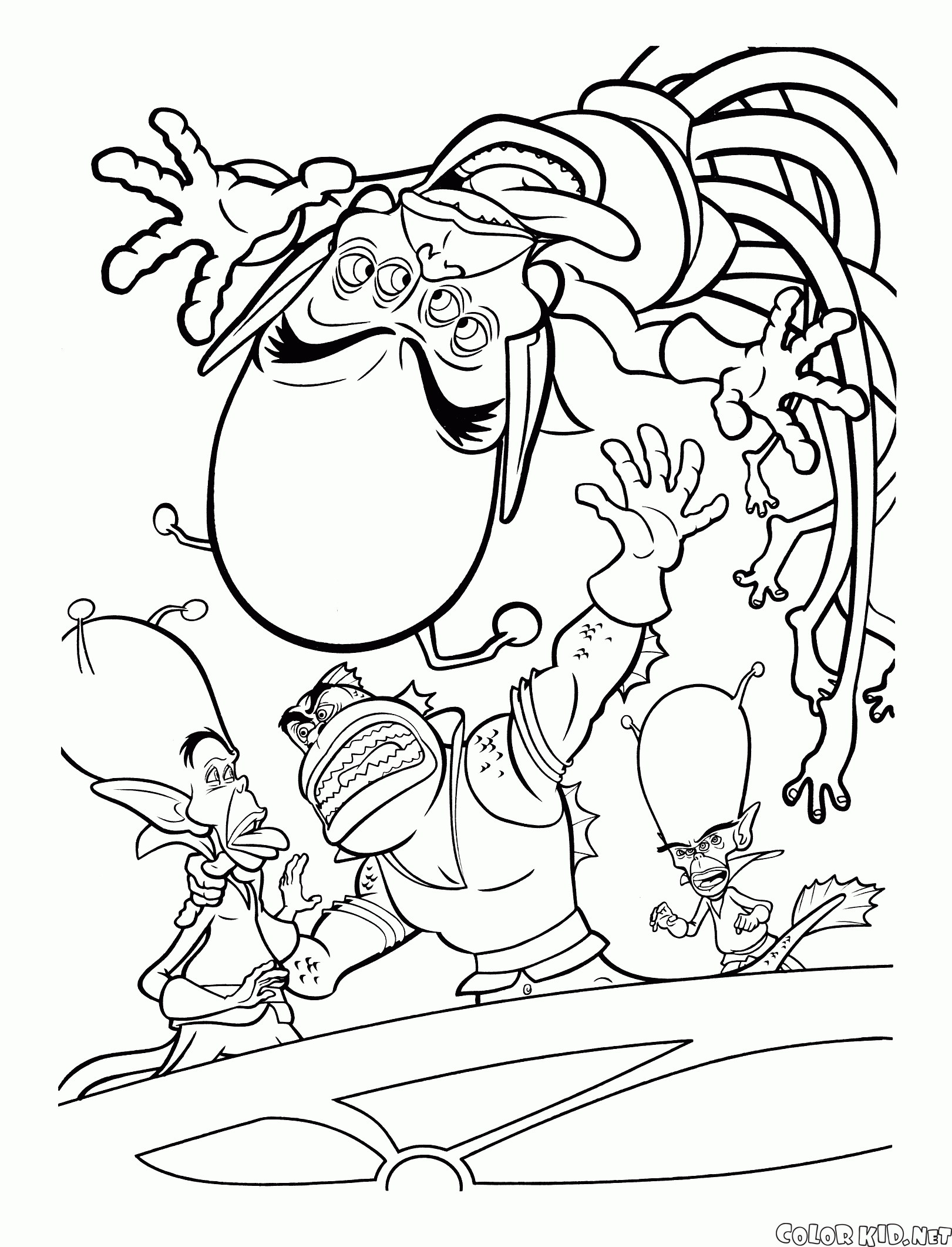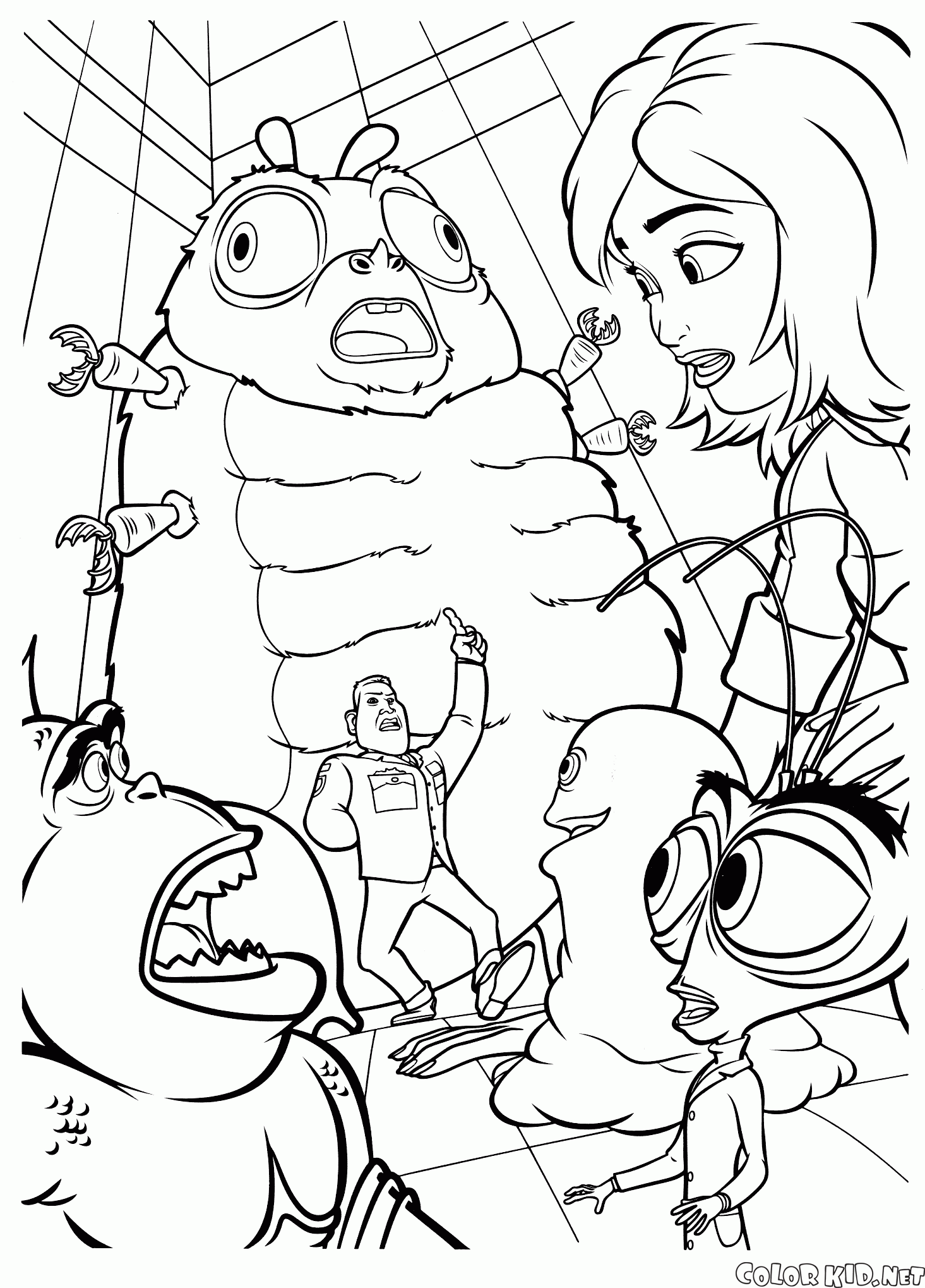 En Dibujos animados hallará las páginas para colorear Monstruos contra alienígenas y otras también.