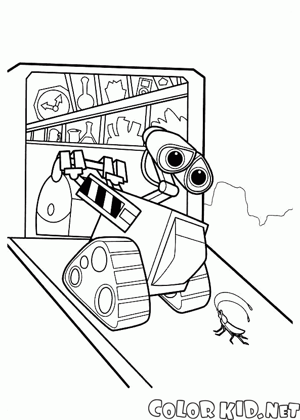 Dibujo para colorear - WALL-E y cucarachas