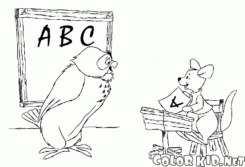 Dibujo para colorear - El búho y el pequeño canguro