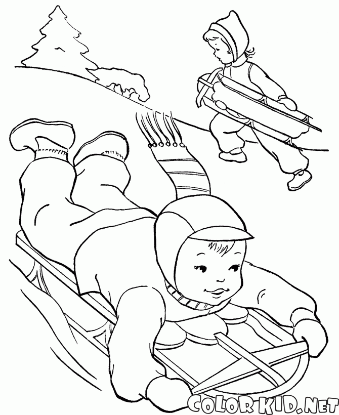 Dibujo para colorear - Kid trineo