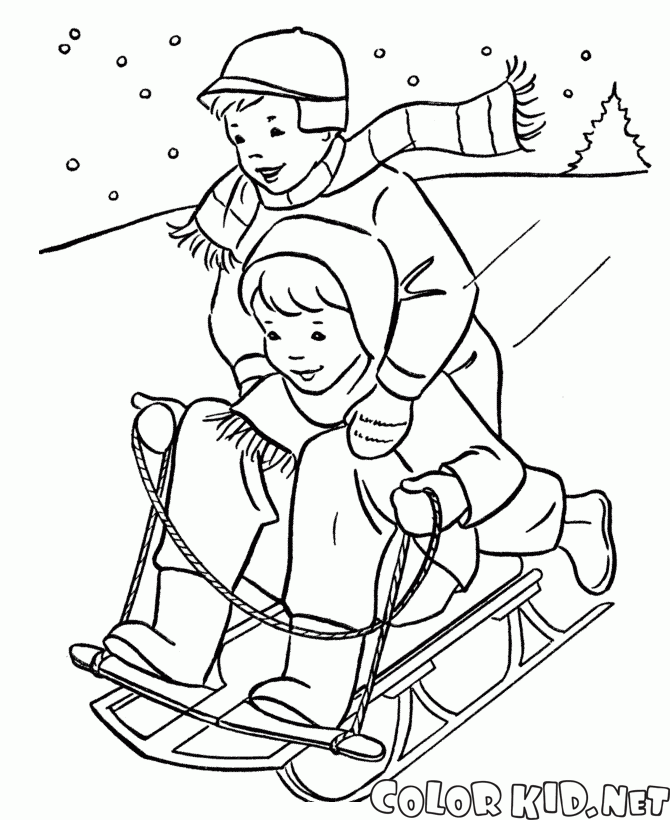 Dibujo para colorear - Niños trineo