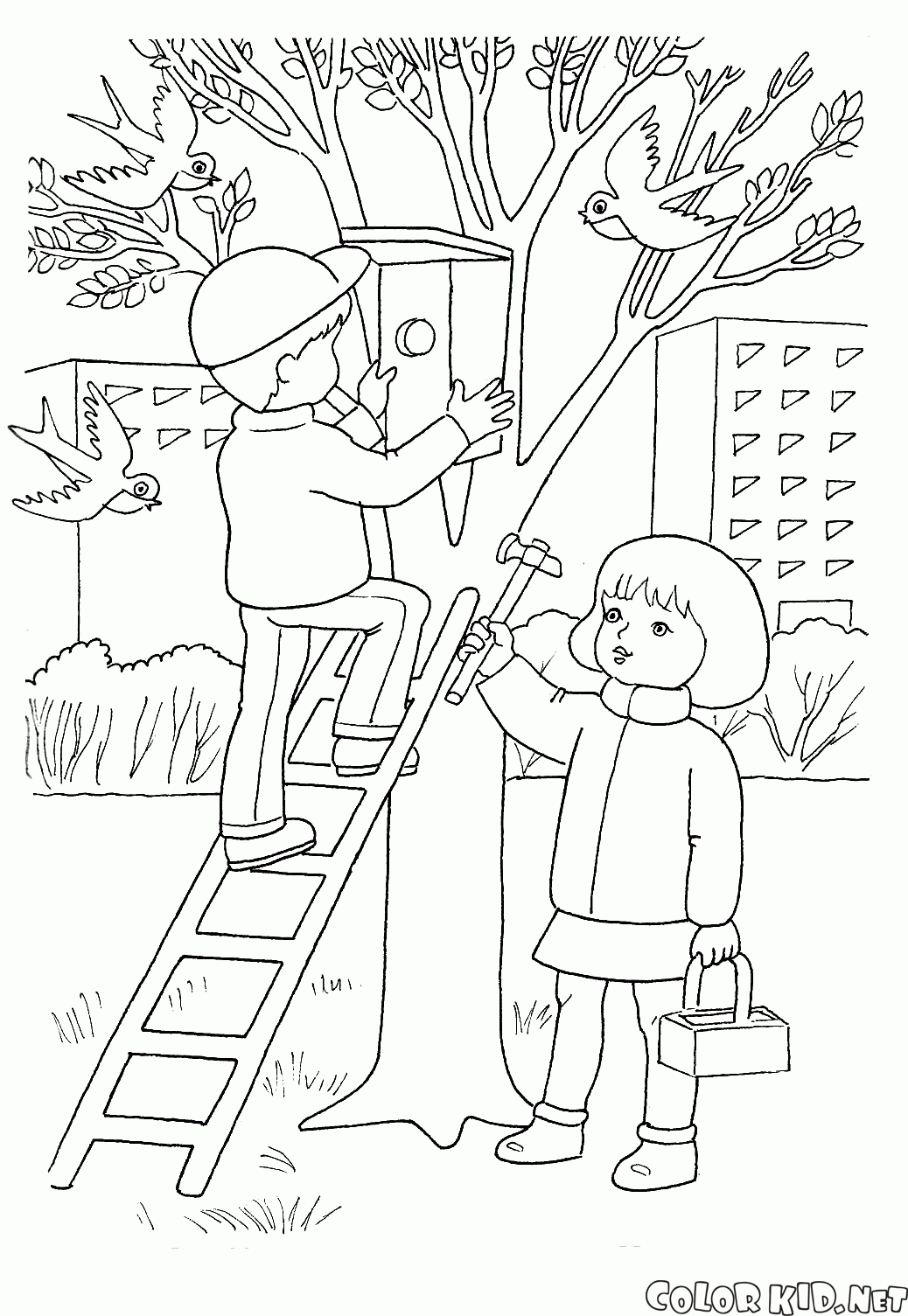 Niños que introducen pájaros