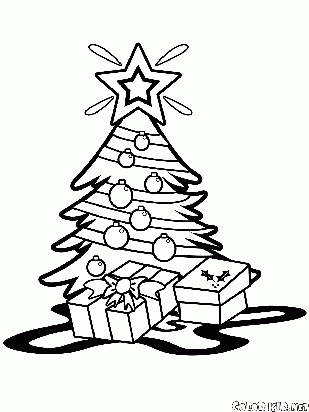 Puede descargar e imprimir las páginas para colorear para niños Árbol de navidad con una estrella desde nuestra web.