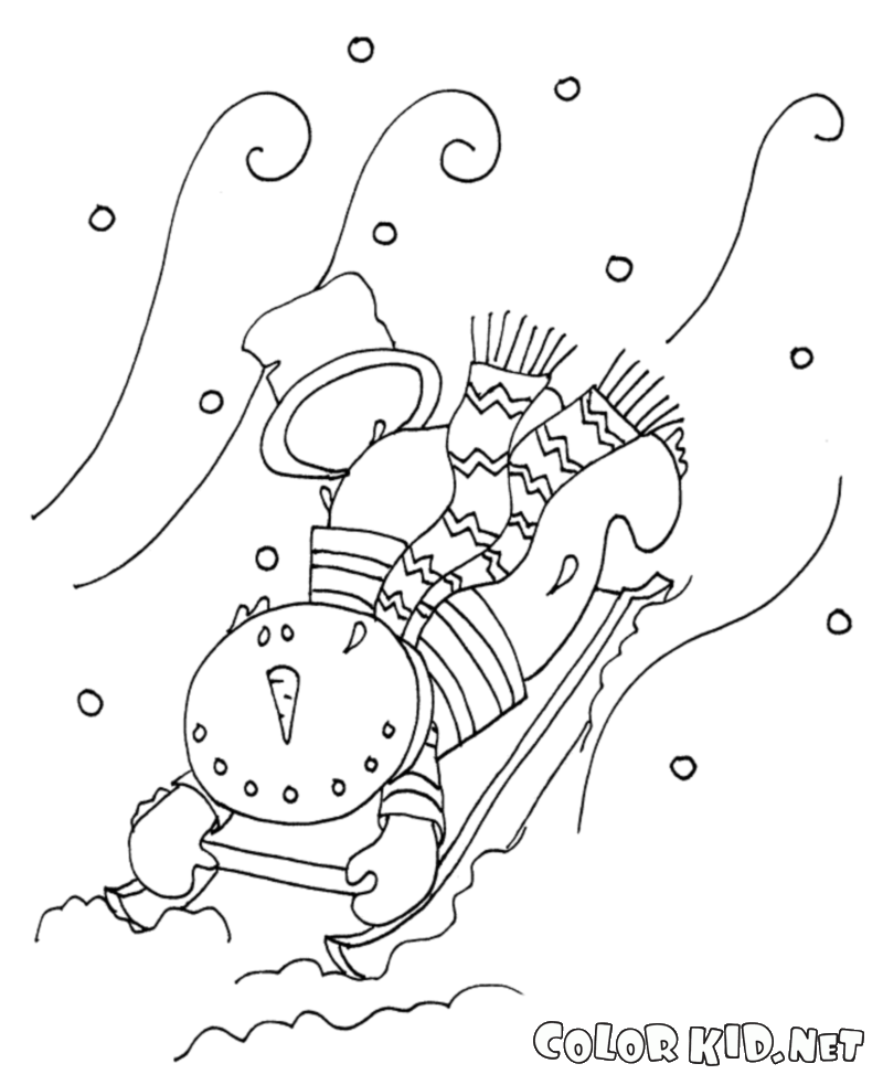 Dibujo para colorear - Muñeco de nieve y trineo