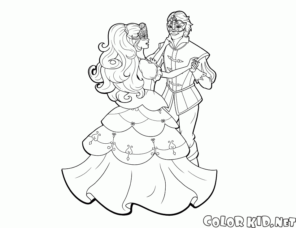 Dibujo para colorear - Barbie en el baile de máscaras