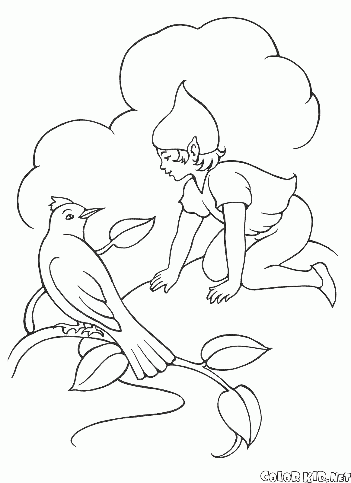 Duende de la muchacha y un pájaro