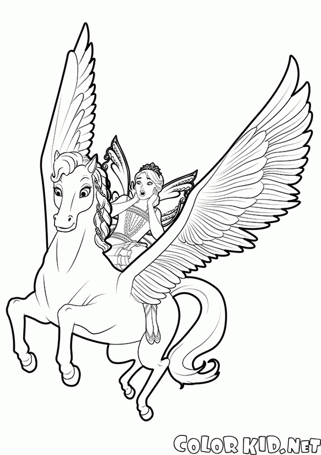 Dibujo para colorear - Hada y Pegaso