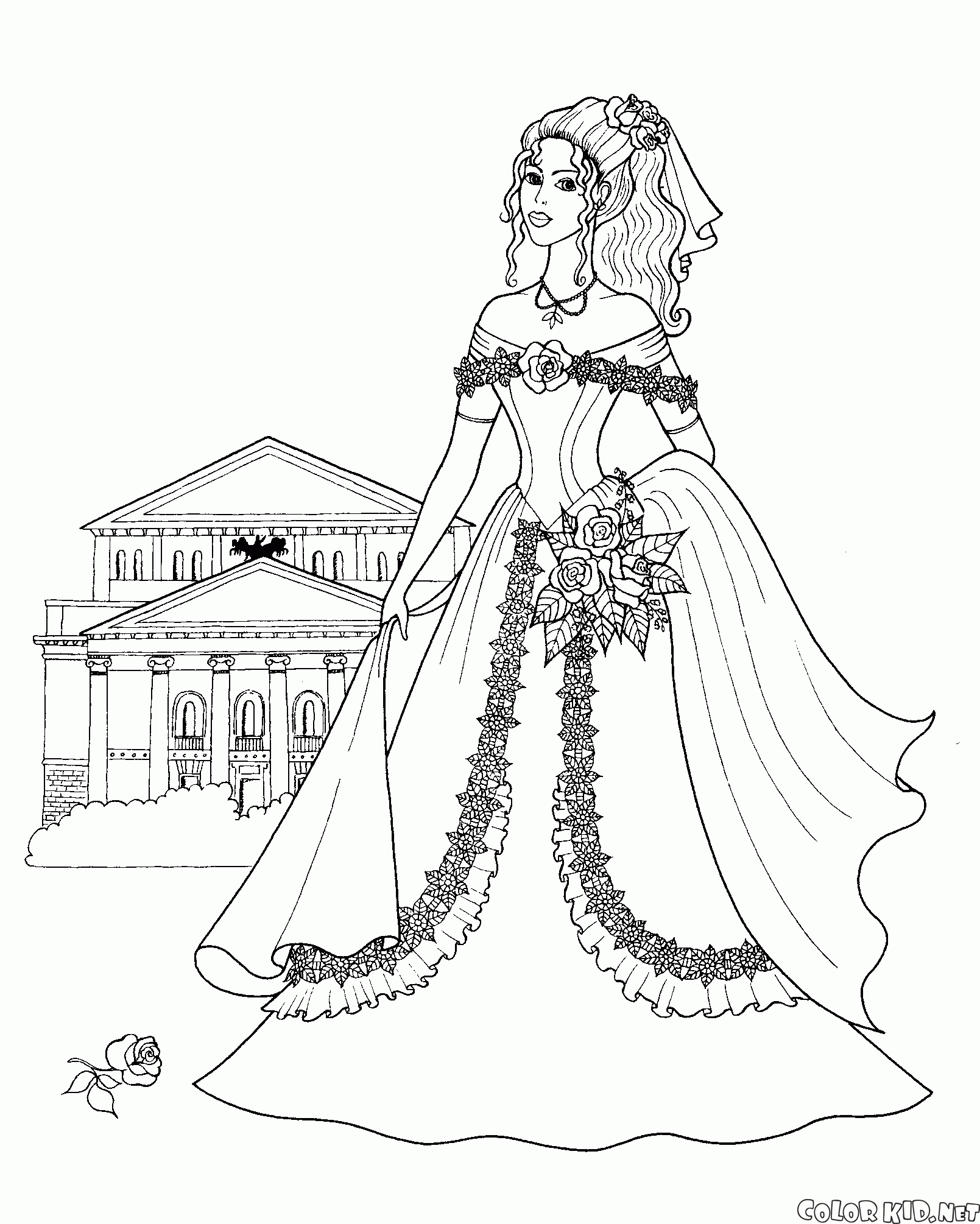 Dibujo para colorear - Princesa con un ramo