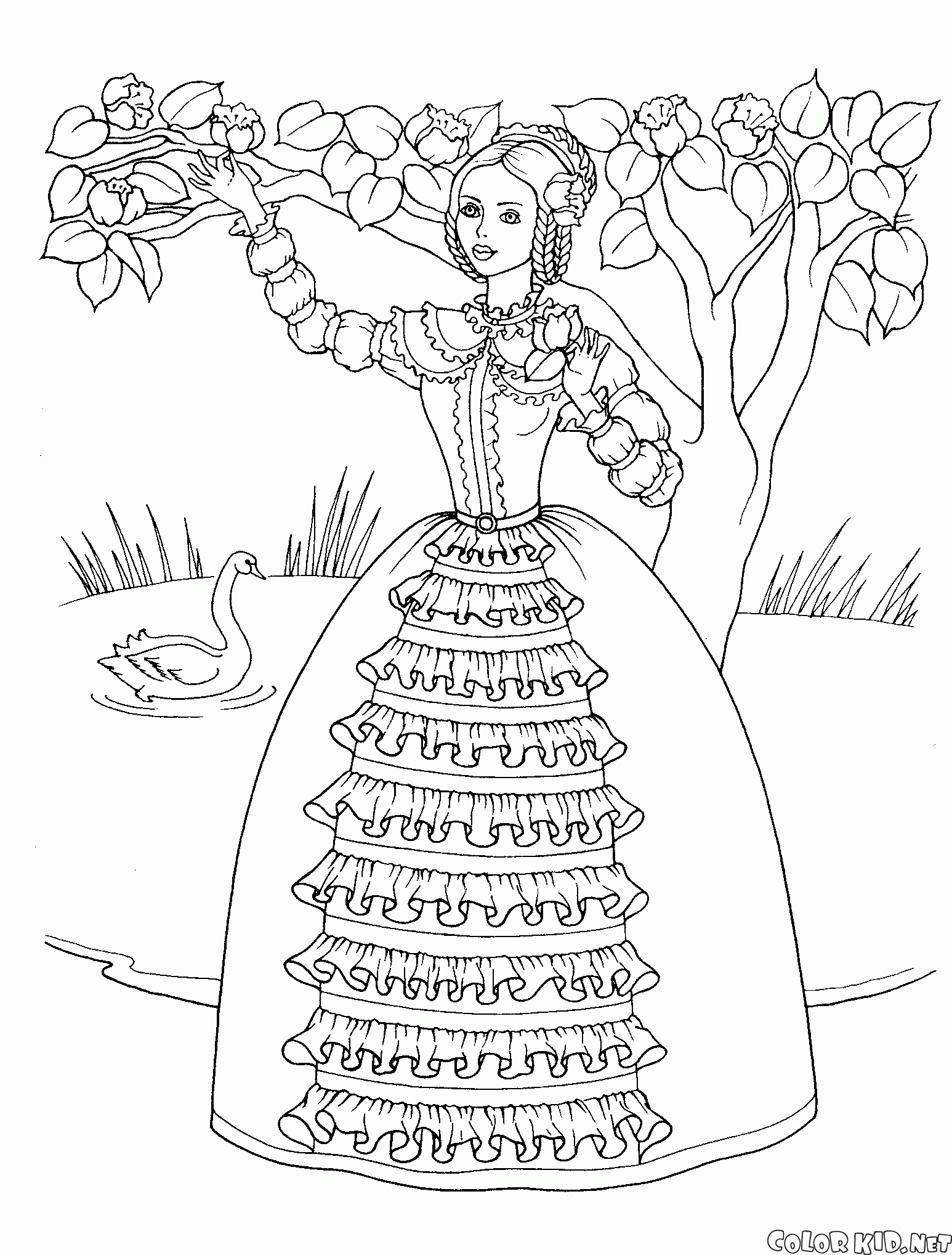 Dibujo para colorear - Princesa en el jardín