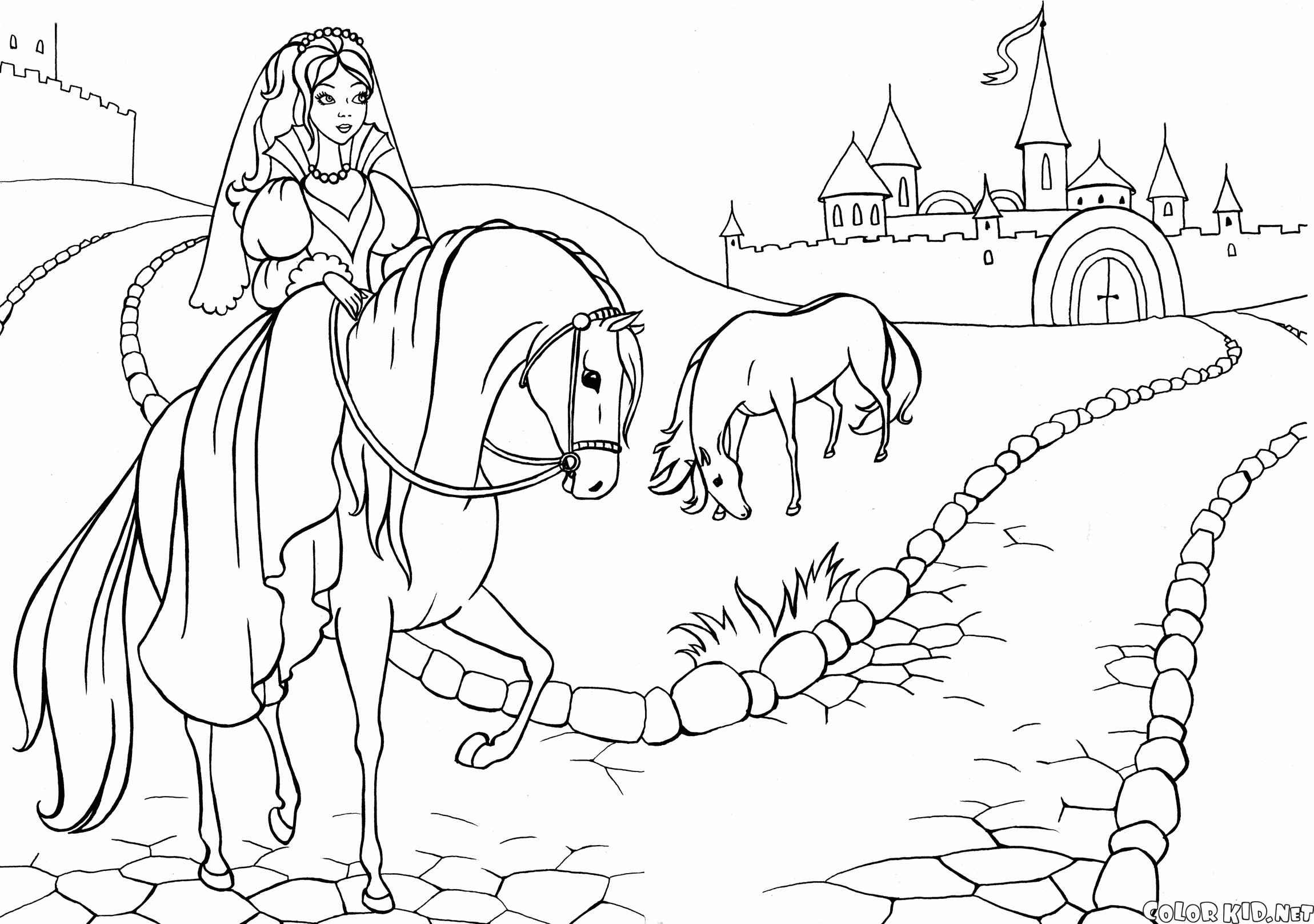 Dibujo para colorear - En el camino hacia el castillo