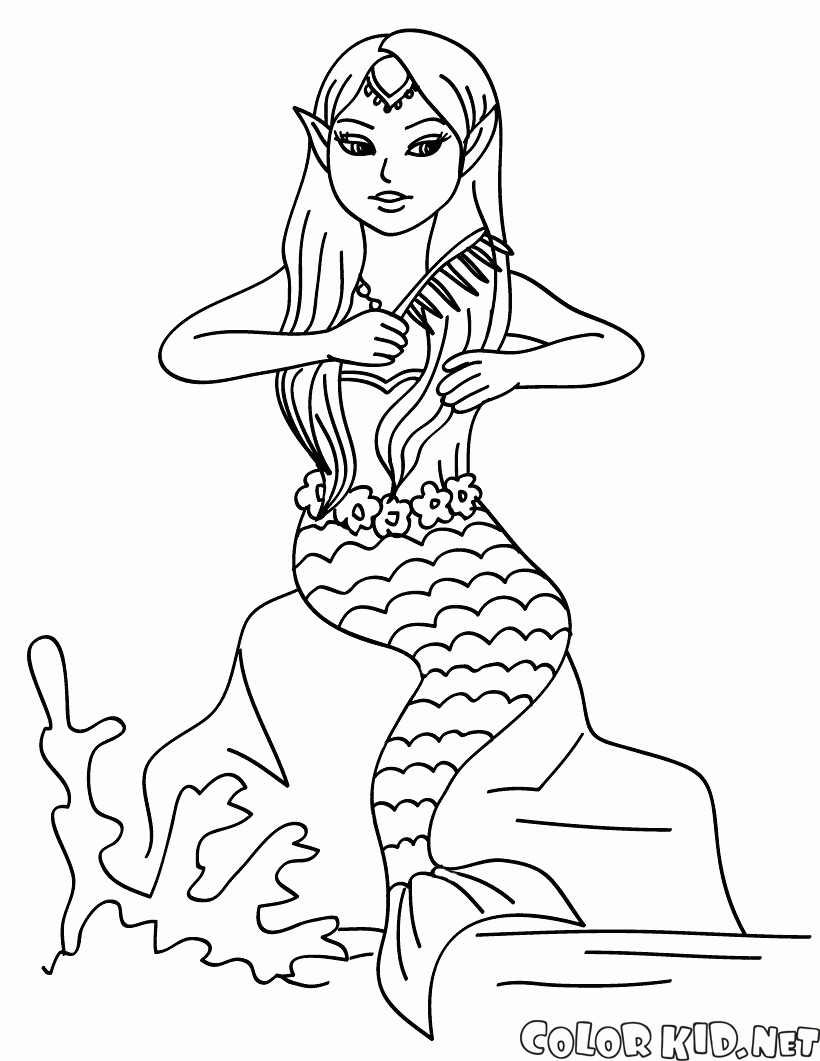 Dibujo para colorear - Sirena peinándose