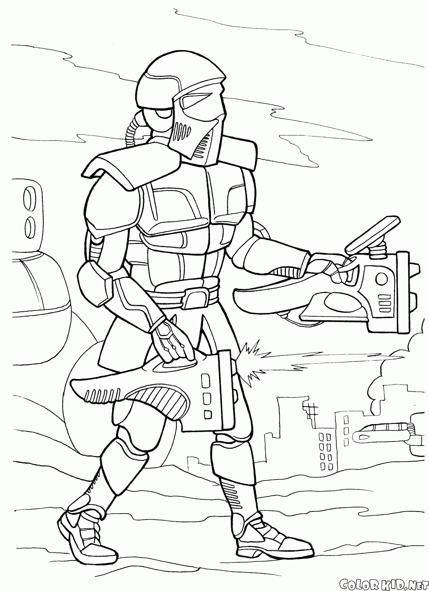 En Para chicos hallará las páginas para colorear Guerras futuristas y otras también.