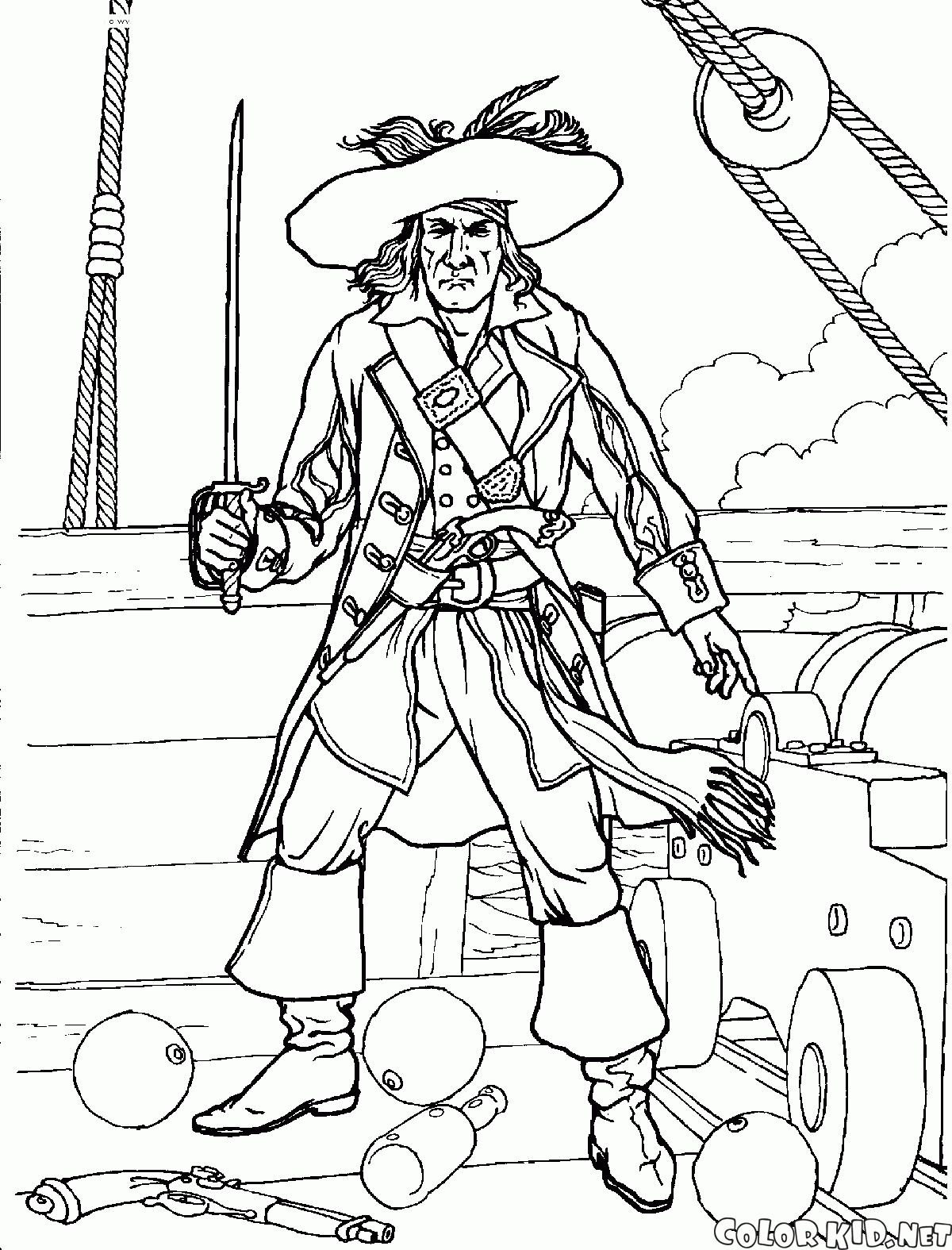 Dibujo para colorear - Pirata en una batalla
